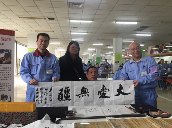 【图:残疾人艺术家王渊鹏老师亲笔题写“大爱无疆”赠予710公海赌赌船官网欢迎您杭州地区分公司】